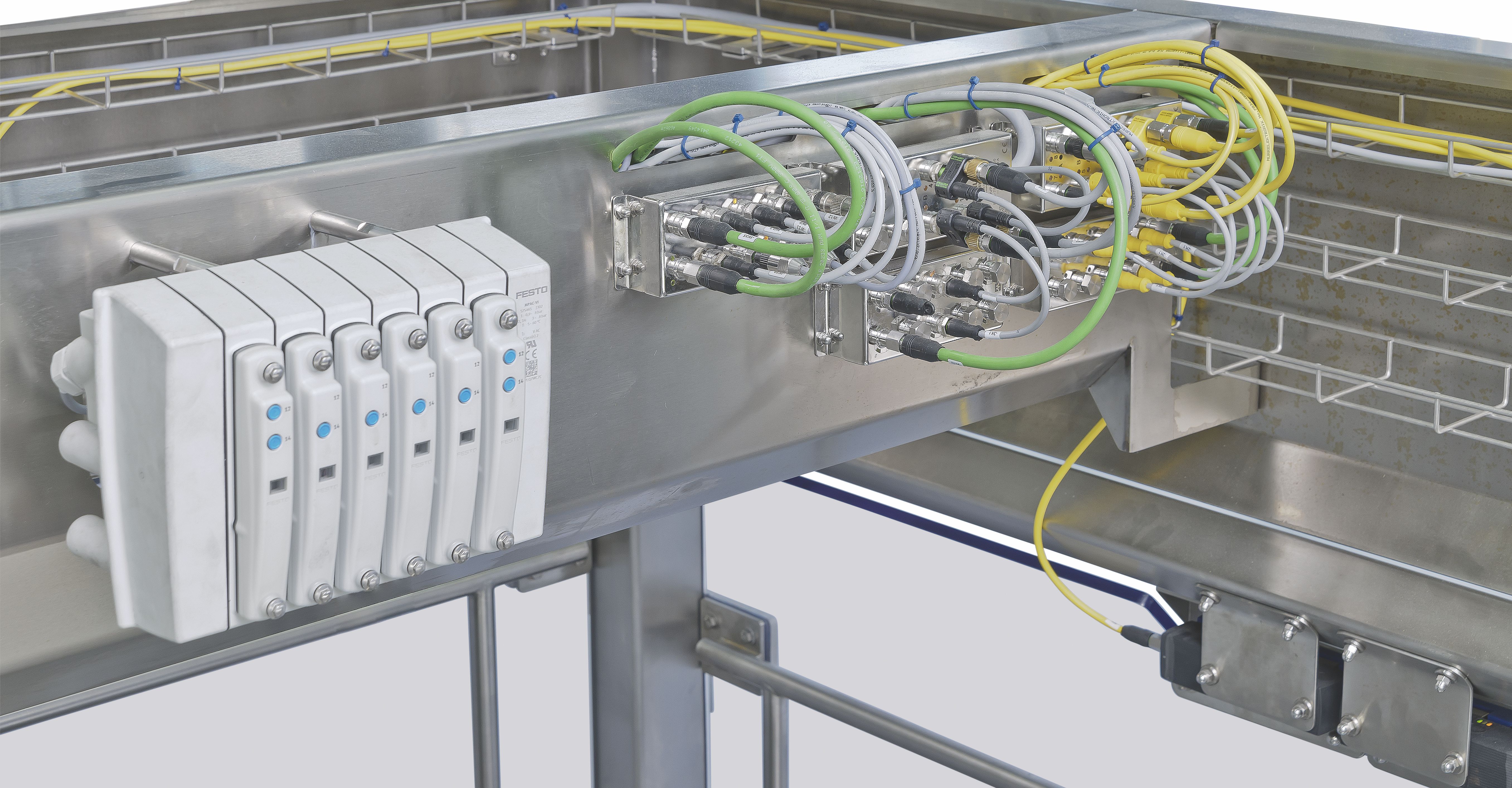Nel settore alimentare, il cablaggio punto a punto rende particolarmente complicate le operazioni di pulizia. La soluzione più efficace risulta essere la tecnologia ad un unico cavo di Cube67.